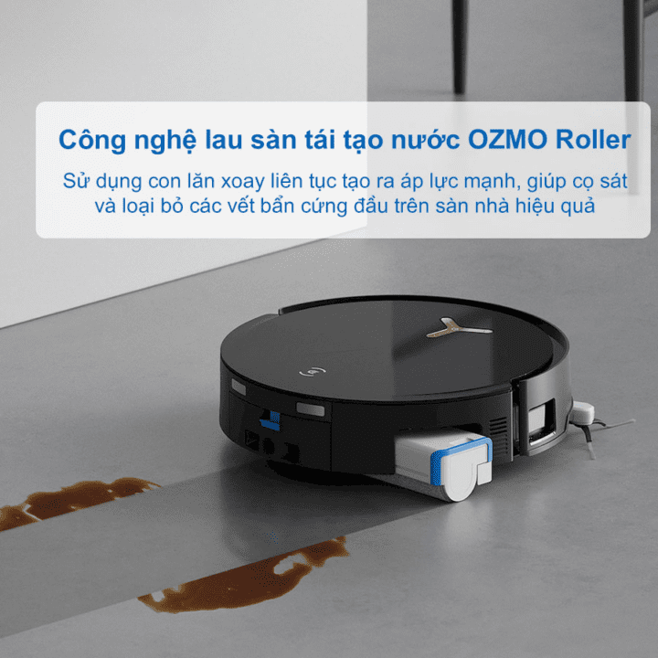 Hệ thống lau con lăn OZMO Roller 2.0 tạo lực ép lên đến 3.800Pa, mang lại hiệu quả làm sạch cao gấp 16 lần so với đĩa lau kép truyền thống (theo Ecovacs). Con lăn quay 200 vòng/phút và được giặt liên tục, giúp sàn sạch bóng, không vệt nước.