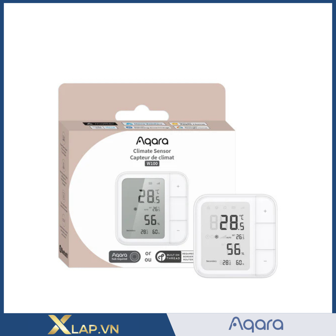 Aqara W100 (TH-S04D) là cảm biến đo nhiệt độ và độ ẩm thông minh thế hệ mới, tích hợp màn hình LCD lớn, khả năng kết nối đa giao thức như Matter-over-Thread, Thread, Zigbee 3.0, Bluetooth 5.0 và tương thích hoàn toàn với các nền tảng như Apple HomeKit, Google Home, Amazon Alexa. Ngoài đo chính xác môi trường, W100 còn được trang bị 3 nút vật lý hỗ trợ tạo 9 kịch bản tự động hóa, giúp kiểm soát thiết bị ngay cả khi không dùng điện thoại.