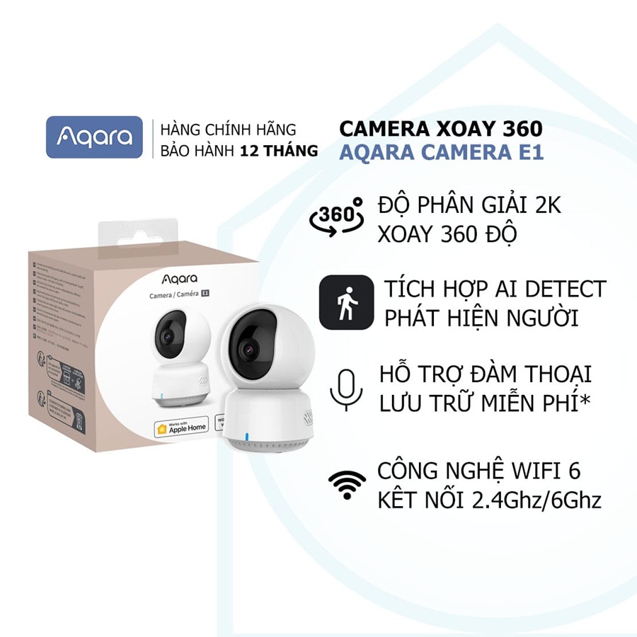 Chào bạn, rất vui bạn quan tâm đến sản phẩm camera Aqara E1 2K 360° này! Với độ phân giải 2K sắc nét và khả năng xoay 360 độ bao quát, đây chắc chắn là lựa chọn rất đáng cân nhắc cho nhu cầu giám sát nhà bạn đấy. Camera này còn có AI nhận diện người thông minh, kết nối Wi-Fi 6E tốc độ cao và bảo hành chính hãng lên tới 18 tháng nữa. Nếu có thắc mắc gì thêm, đừng ngại liên hệ nhé! 😊