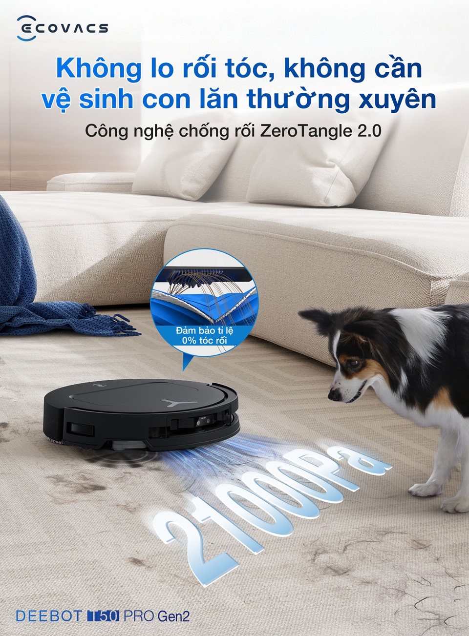 Công nghệ ZeroTangle 2.0 giúp chổi chính không bị rối khi gặp tóc dài hay lông thú cưng. Người dùng cũng dễ dàng tháo lắp và vệ sinh chổi chỉ trong vài thao tác đơn giản.