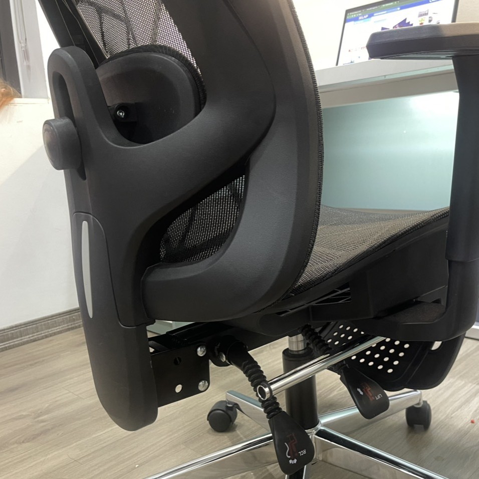 Cái lưới tựa lưng này ngồi lâu có bị nóng bí không nhỉ? Với tay vịn 2D có chắc chắn không, sợ bị lung lay quá.