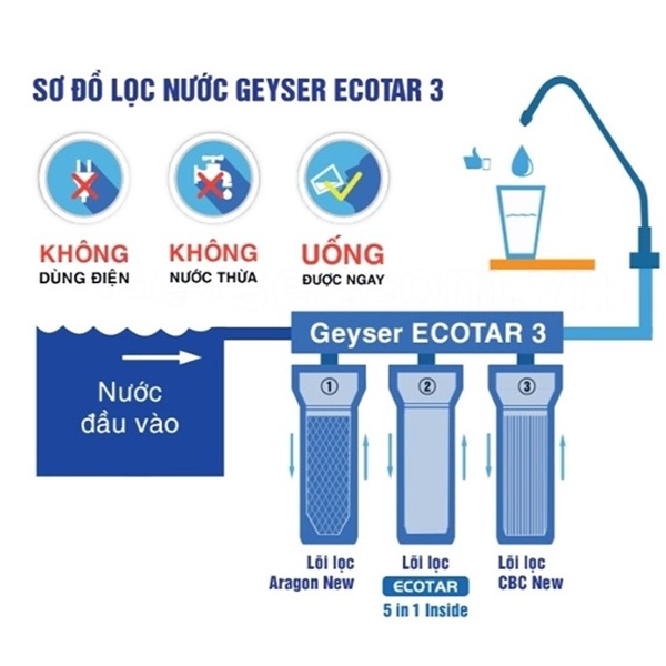 Geyser Ecotar 3 là dòng máy nano nhập khẩu từ Liên bang Nga, tối ưu cho nguồn nước Việt Nam. Máy lọc sạch tạp chất và vi sinh nhưng vẫn giữ vi khoáng có lợi. Nước sau lọc uống trực tiếp tại vòi, an toàn cho mọi thành viên.