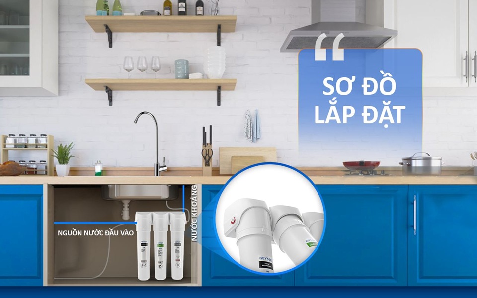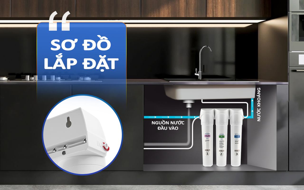 • Tuổi thọ lõi tham khảo: Lõi 1 ~4.000 L hoặc 12 tháng, Lõi 2 ~7.000 L hoặc 18 tháng, Lõi 3 ~7.000 – 10.000 L hoặc 18 tháng