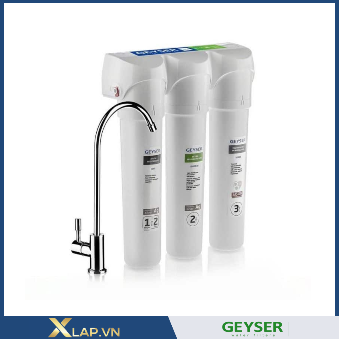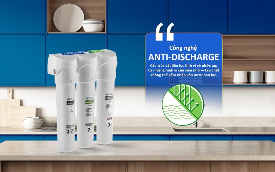 • Hệ thống lọc: 3 lõi – lọc cơ học, trao đổi ion, hấp phụ và diệt khuẩn bằng bạc