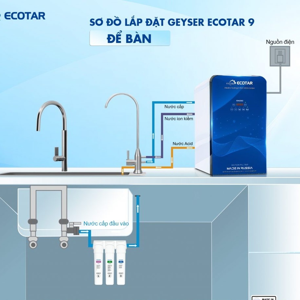 🎯 Tên sản phẩm: Máy lọc nước ion kiềm giàu hydro Geyser Ecotar 9