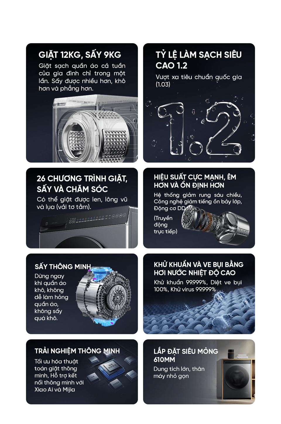 Máy giặt sấy Xiaomi Mijia MJ101 – Giặt 12kg, Sấy 9kg, thiết kế siêu mỏng, công nghệ giặt hơi nước khử khuẩn 99.999%
