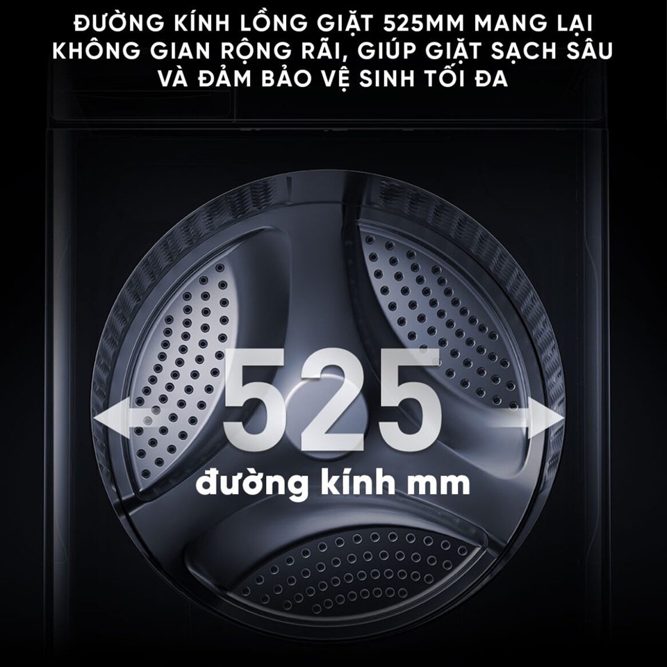 Lồng giặt lớn 525mm – Giặt sạch hơn, giảm xoắn rối
