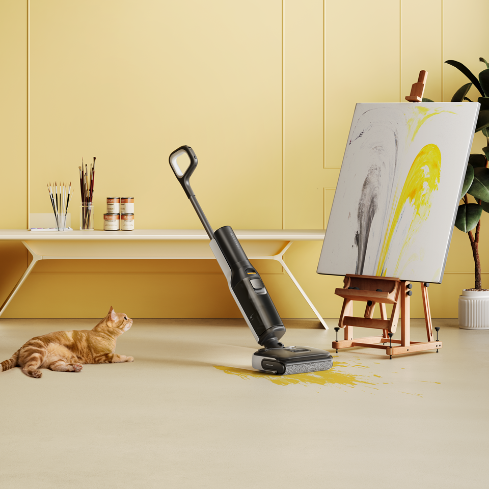 Dock sạc đi kèm có chức năng giặt nóng và sấy con lăn tự động, đồng thời tự pha dung dịch lau sàn. Đây là giải pháp lau nhà “rảnh tay”, phù hợp với nhà chung cư, nhà phố và gia đình có trẻ nhỏ hoặc vật nuôi.