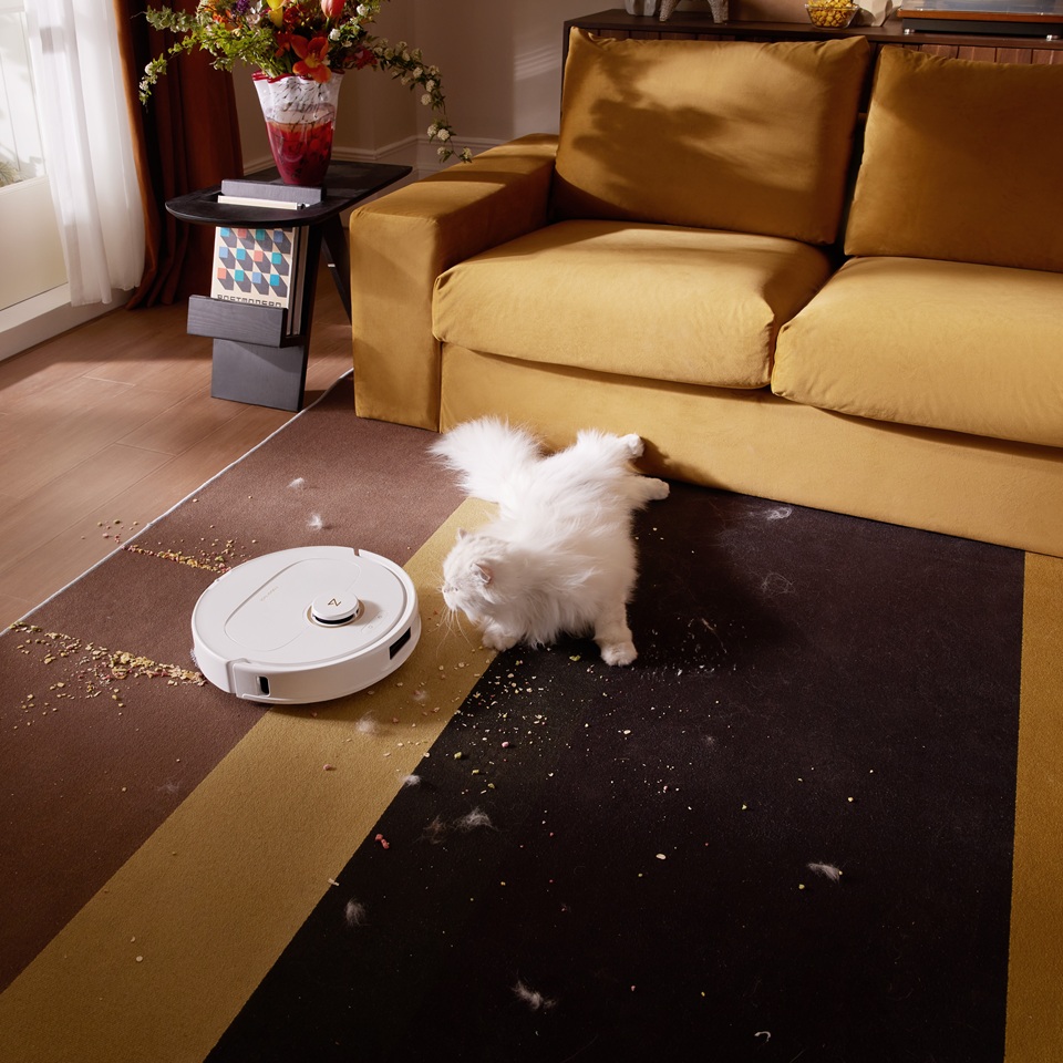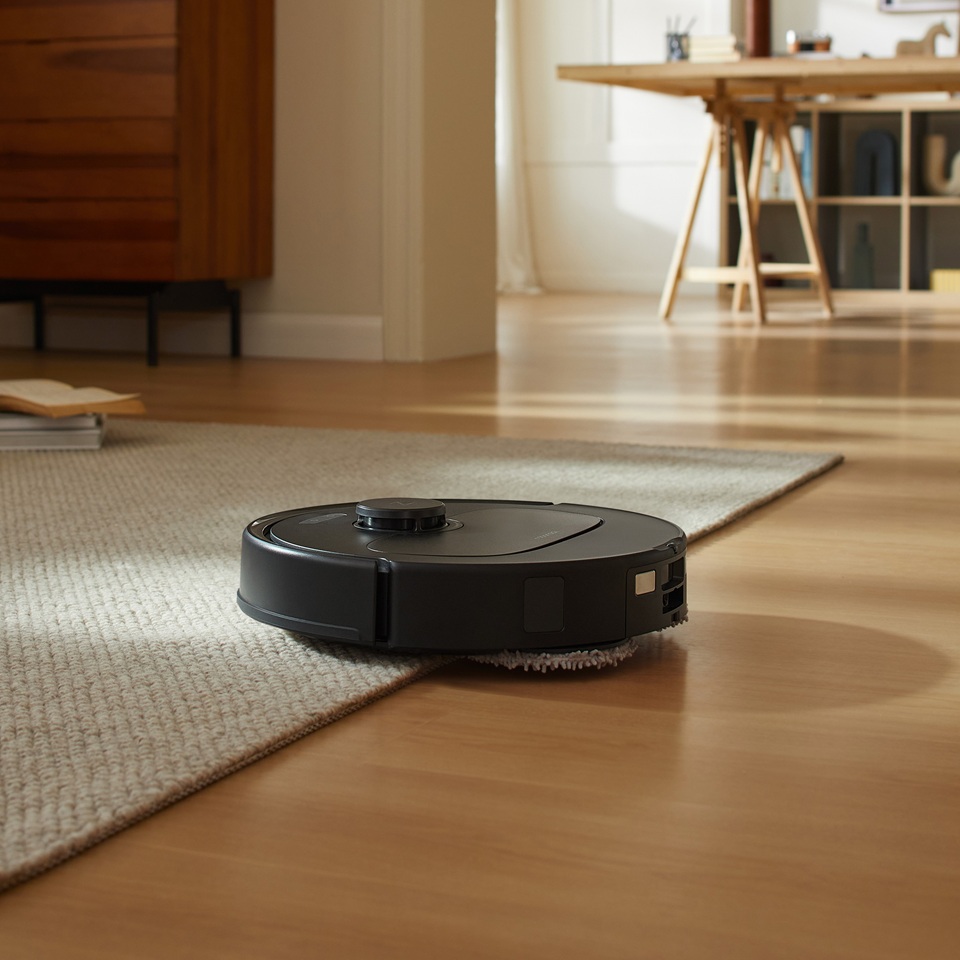 Robot sử dụng giẻ lau xoay kép tạo lực chà mạnh. Tốc độ 200 vòng/phút giúp loại bỏ vết cà phê, nước ngọt và bùn khô. Giẻ xoay ngược chiều, không để lại vệt bẩn. Khi gặp thảm, giẻ tự nâng 10mm để tránh làm ướt. Phù hợp cho nhà sàn hỗn hợp gỗ – thảm.