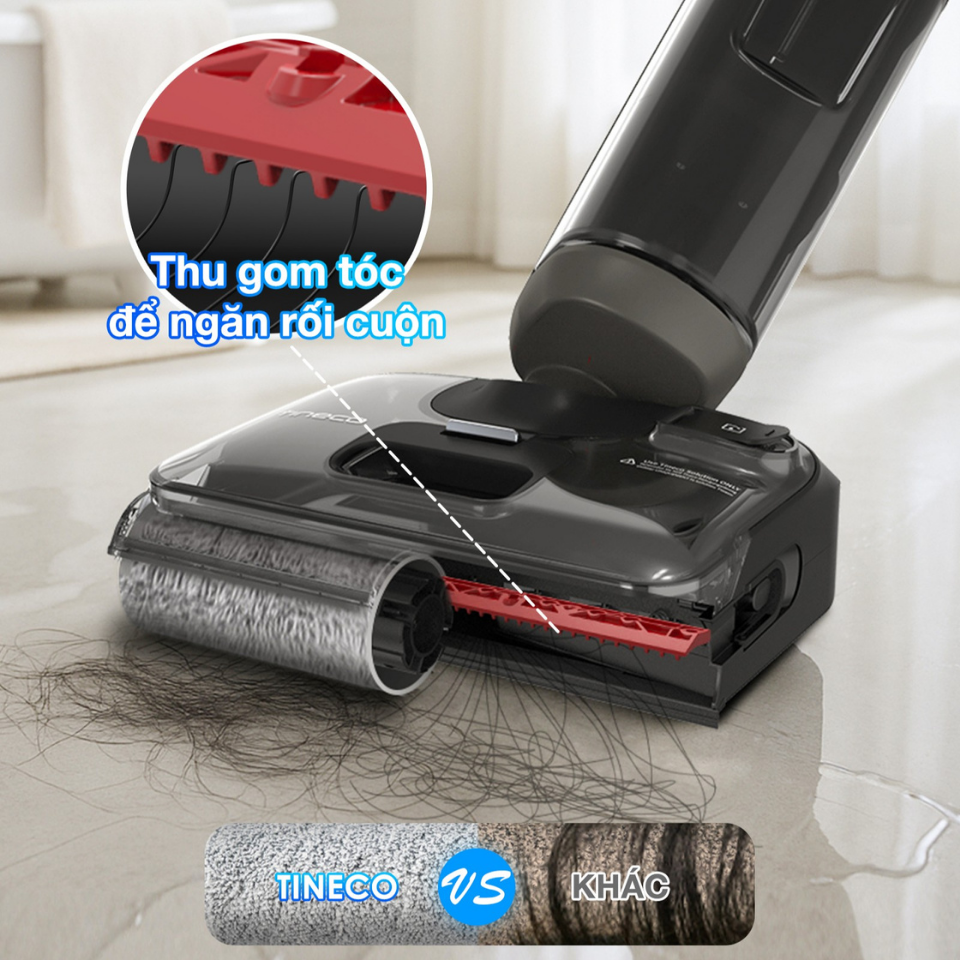 Tineco Floor One i6 Stretch Plus tích hợp công nghệ chống rối Anti-Tangle. Cho phép máy hút sạch tóc và lông thú cưng mà không bị kẹt trong con lăn. Nhờ đó, máy vận hành trơn tru, liên tục – đặc biệt phù hợp với gia đình nuôi chó mèo hoặc có người tóc dài.