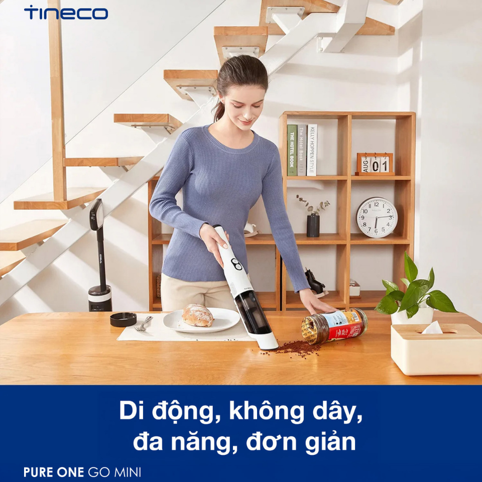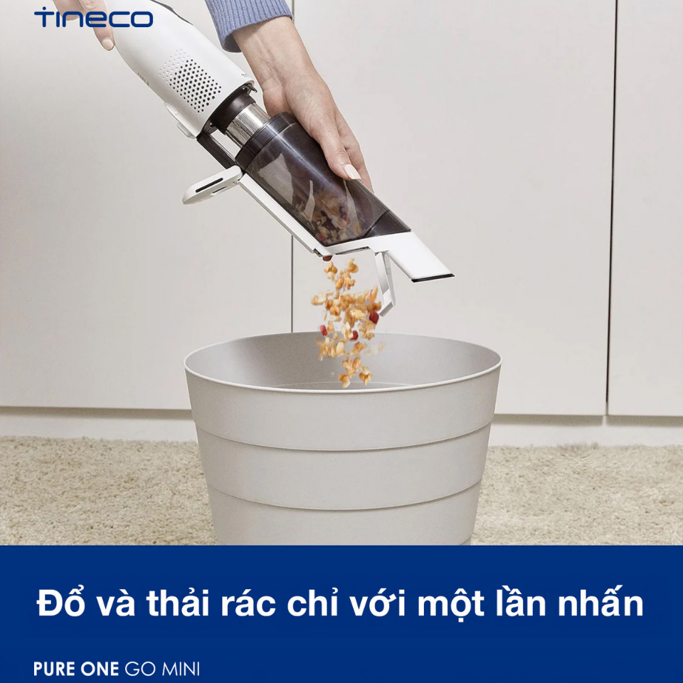 Tineco GO Mini là dòng máy hút bụi cầm tay không dây nhỏ gọn, tiện dụng dành cho gia đình hiện đại. Với trọng lượng siêu nhẹ ~1.3kg, hiệu suất hút mạnh mẽ cùng bộ lọc HEPA 4 tầng, GO Mini giúp bạn xử lý nhanh mọi bụi bẩn, vụn thức ăn, lông thú cưng trên sofa, ô tô, bàn ăn… Thiết kế không dây linh hoạt, thời lượng pin lên tới 20 phút, rất lý tưởng cho các tác vụ làm sạch tức thì trong nhà và xe hơi.