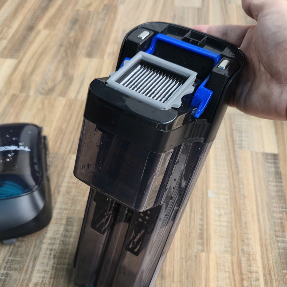 Bình nước sạch được tái định vị thông minh, đảm bảo áp lực nước ổn định trong toàn bộ quá trình lau.