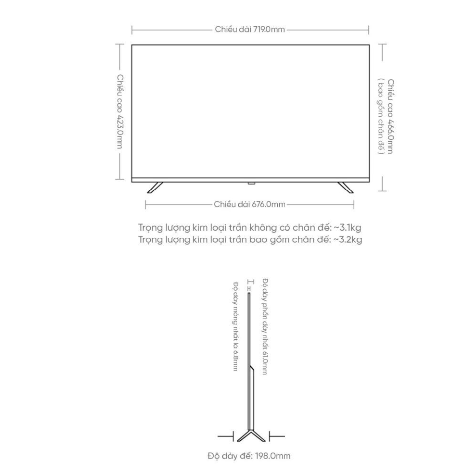 Khung viền kim loại chắc chắn, bền bỉ theo thời gian. Chân đế vững chắc và tùy chọn treo tường linh hoạt. Tông màu đen nhám cùng đường nét tối giản giúp tivi dễ dàng hòa hợp với mọi không gian nội thất.