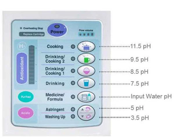 Máy được trang bị bộ điện phân 5 cell đa lớp. Giúp tạo ra 5 loại nước khác nhau, từ nước ion kiềm mạnh đến nước trung tính và nước axit nhẹ.
