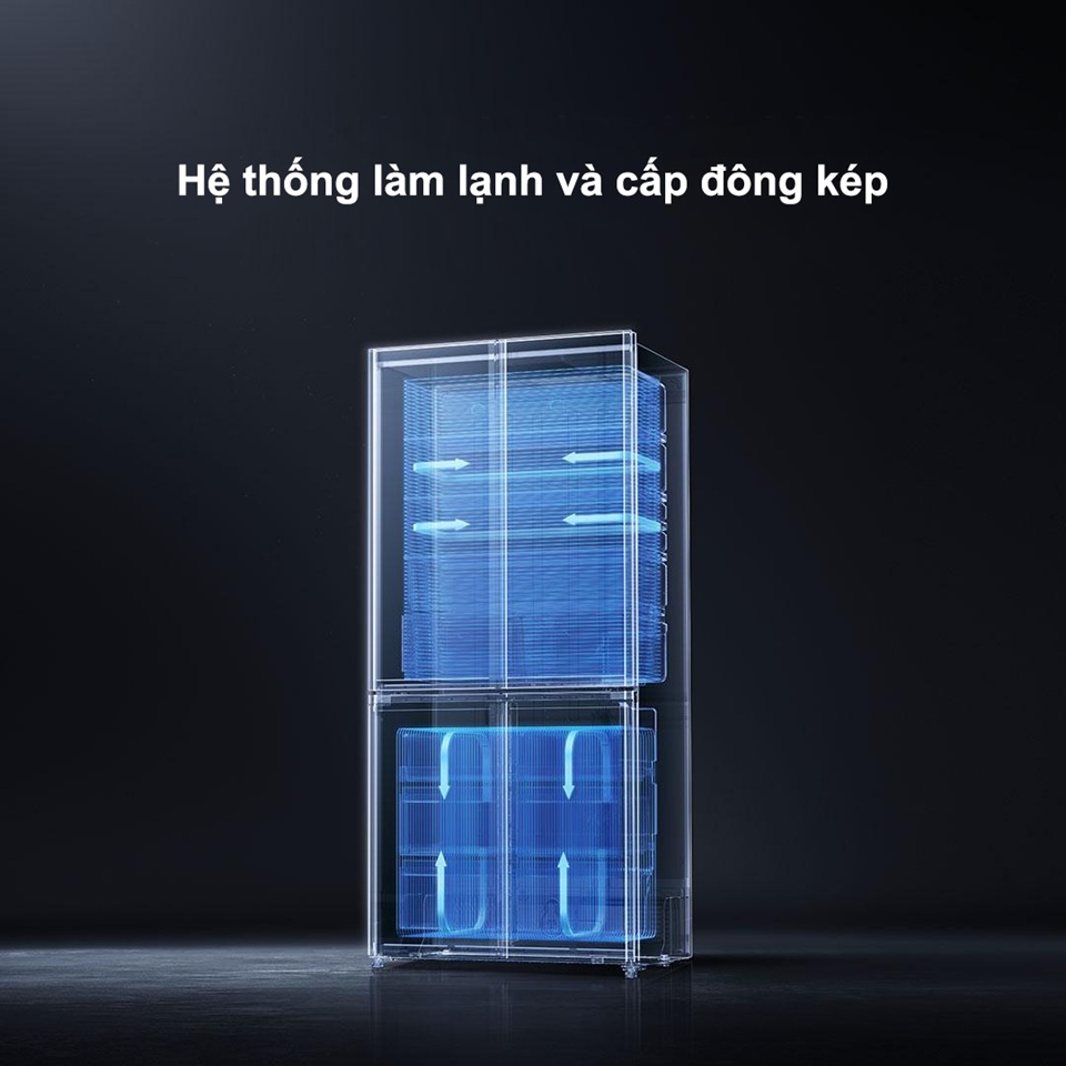 Tủ lạnh trang bị hệ thống làm lạnh kép độc lập cho từng ngăn. Công nghệ này hạn chế mùi lẫn giữa các khu vực và giữ hương vị nguyên bản. Hệ thống làm lạnh tuần hoàn 360° phân bổ nhiệt đều, giúp thực phẩm luôn tươi ngon.
