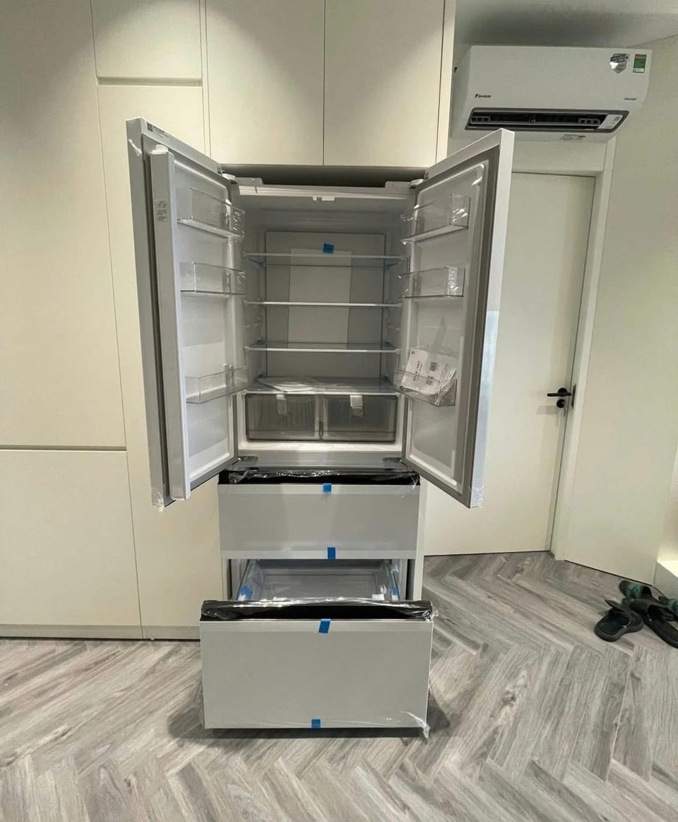 Tủ lạnh Xiaomi 4 cánh 439L là lựa chọn lý tưởng cho gia đình hiện đại. Với thiết kế 4 cánh kiểu Pháp, thân máy mỏng chỉ 60 cm, sản phẩm dễ dàng lắp đặt âm tủ hoặc kê độc lập. Bề mặt kính trắng cao cấp mang đến vẻ ngoài sang trọng, sạch sẽ và dễ vệ sinh.