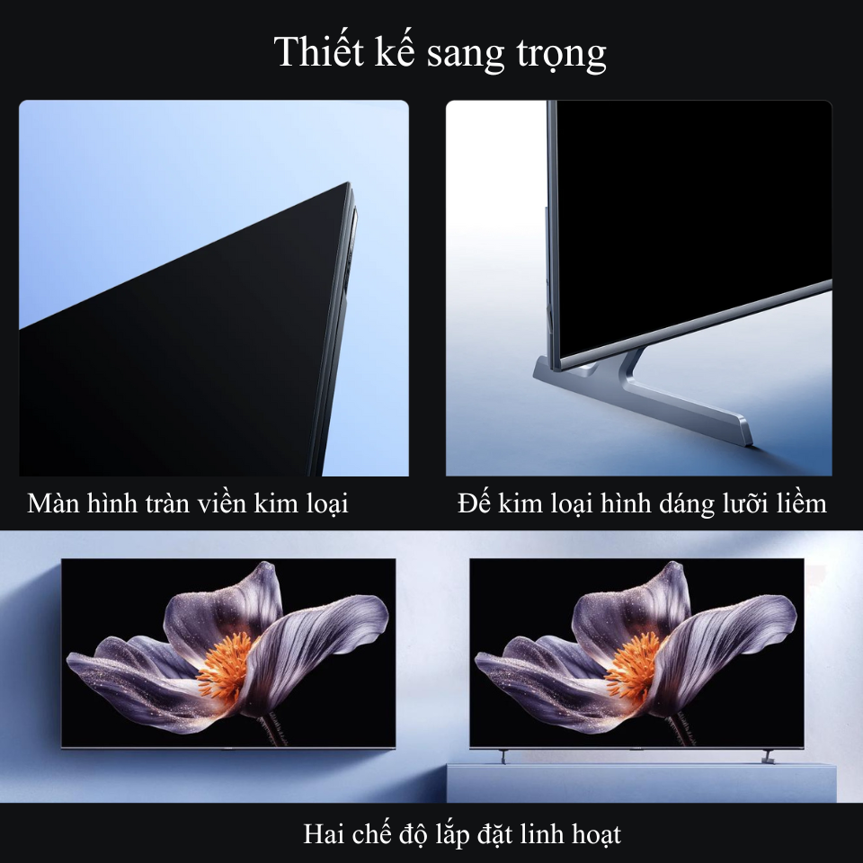 Thiết kế viền siêu mỏng, khung kim loại chắc chắn, đế dáng lưỡi kiếm sang trọng.