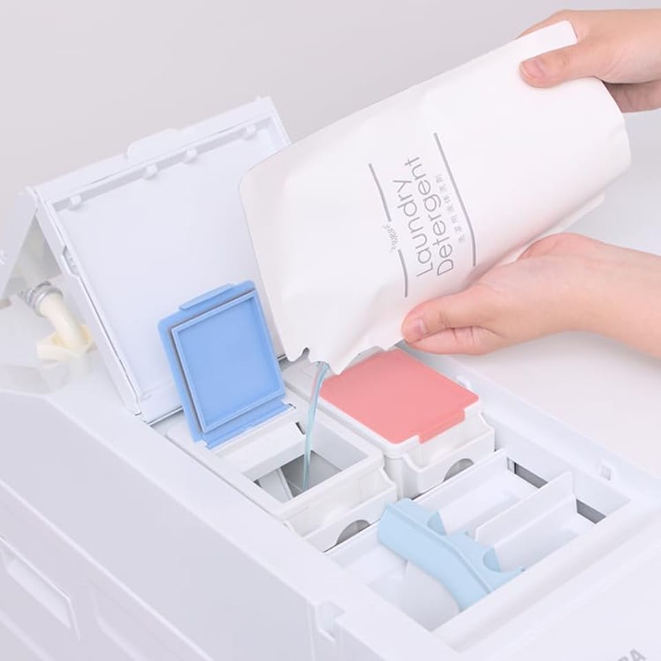 Máy có hệ thống đo lường tự động, chỉ cần đổ đầy một lần, máy sẽ tự cân đối liều lượng phù hợp với từng mẻ giặt – giúp tiết kiệm chất tẩy rửa và tránh lãng phí.